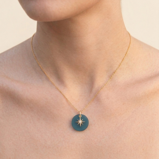 North Star Necklace Blue Collection | Pearl Acrylic & Gold-Accented