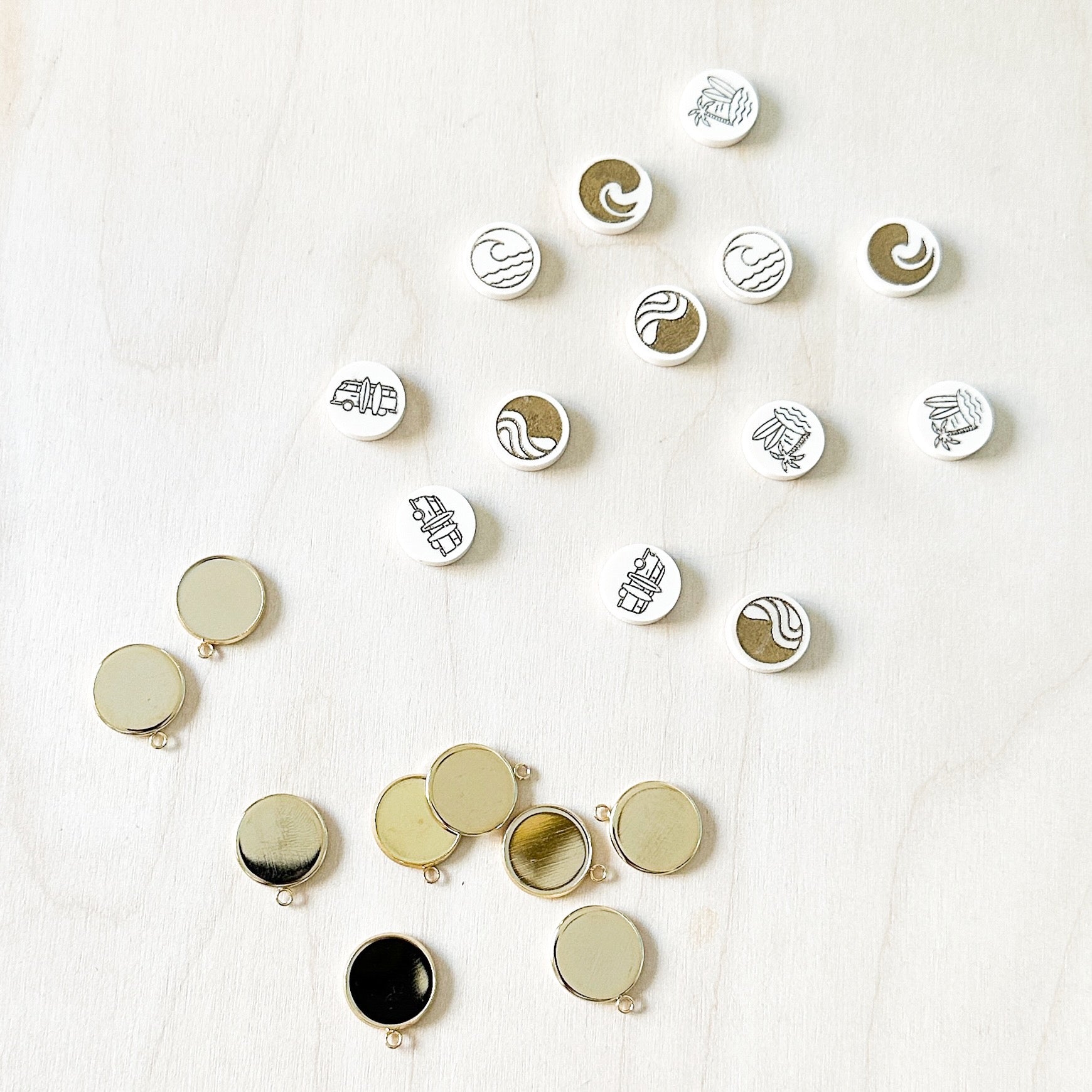 0.6" hand-painted acrylic charm sealed with or without glossy resin (gold painted is less vibrant with the resin but gives a beautiful, luxurious finish).